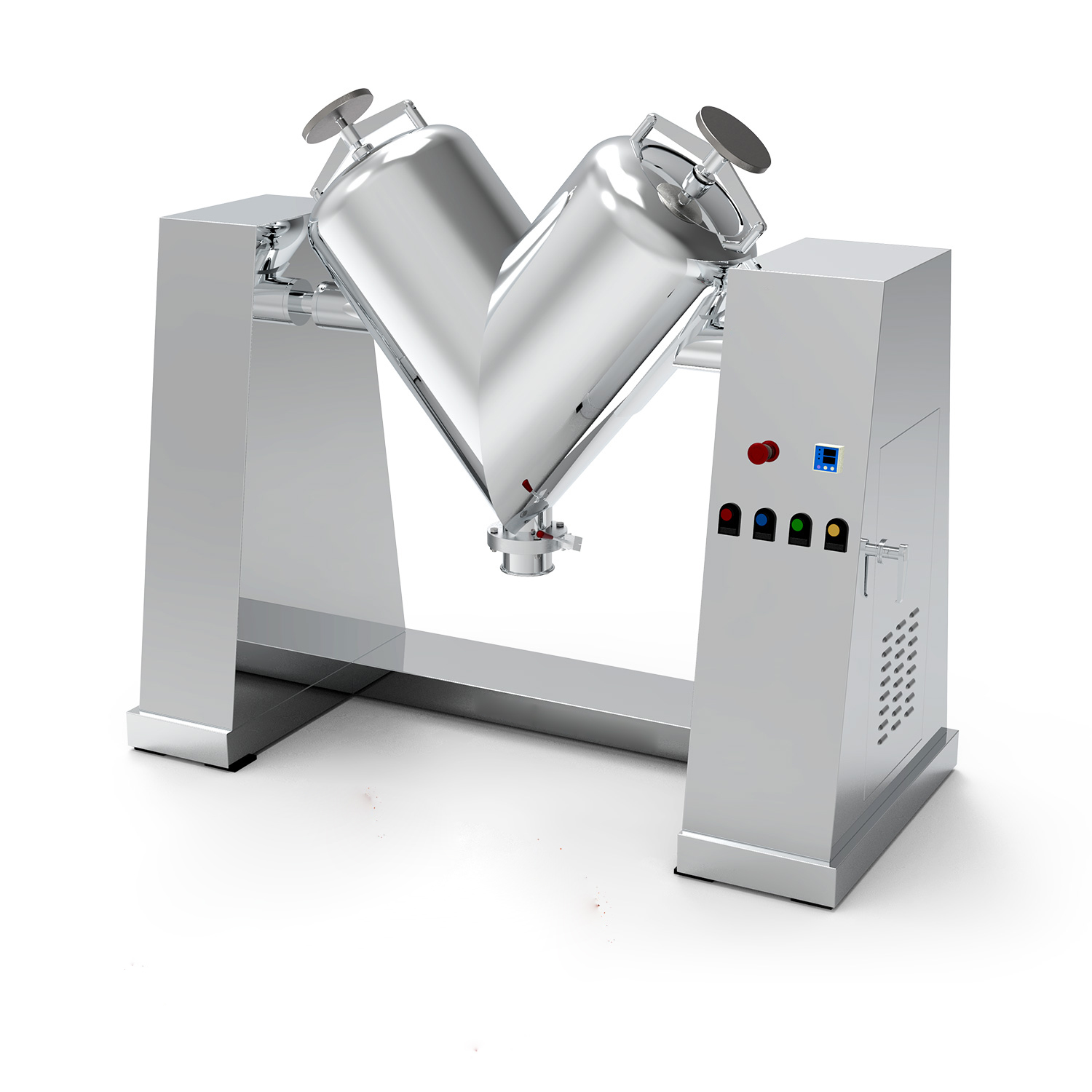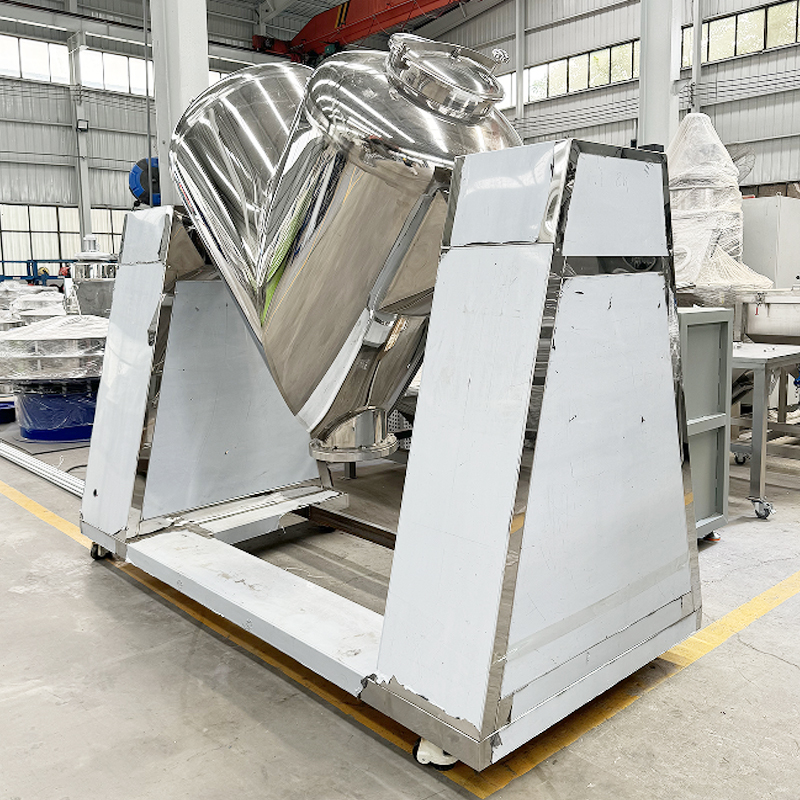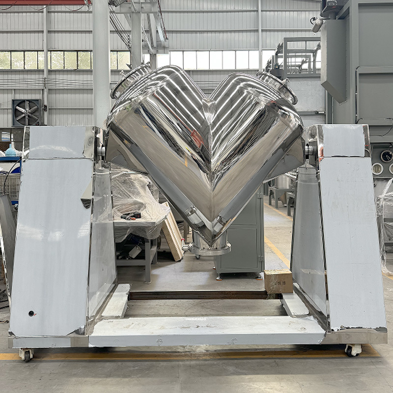 Der V-förmige Mischer ist ein effizientes und vielseitiges Pulvermischgerät. Sein Hauptkörper besteht aus zwei asymmetrischen zylindrischen Abschnitten, die V-förmig verbunden sind. Während des Betriebs drehen sich die Zylinder um ihre Achsen, wodurch die inneren Materialien wiederholt aggregieren und sich trennen, wodurch eine schnelle und gleichmäßige Durchmischung erreicht wird. Dieses Gerät ist einfach aufgebaut, einfach zu bedienen und verfügt über eine glatte Innenwand ohne Rückstände, wodurch es leicht zu reinigen und zu warten ist. Es eignet sich besonders für Branchen mit Hygieneanforderungen beim Mischprozess. Es wird häufig in der Pharma-, Lebensmittel- und Chemieindustrie eingesetzt und eignet sich zum schonenden und effizienten Mischen verschiedener trockener Pulver und körniger Materialien.