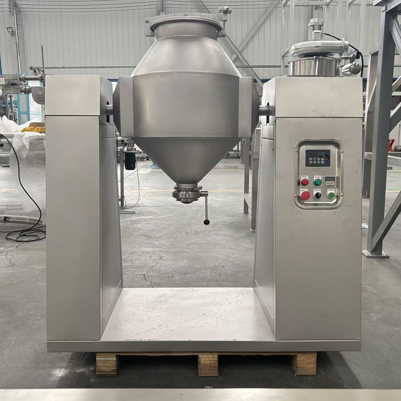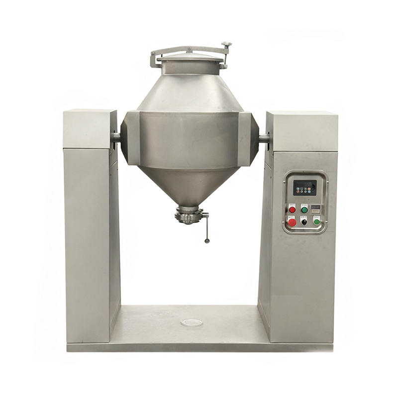 The double-cone mixer is an efficient and versatile equipment for mixing powder and granular materials. Its core structure consists of two symmetrically connected conical cylinders, forming a double-cone shape as a whole. It is usually installed on a rotatable support. Thanks to its unique geometric design, this equipment can achieve three-dimensional motion of the materials at a low rotational speed, ensuring extremely high mixing uniformity. It also features no dead corners, less residue, and easy cleaning. It is widely used in industries such as chemical, food, and feed for the uniform mixing of dry powder, granules, or materials with a small amount of liquid.